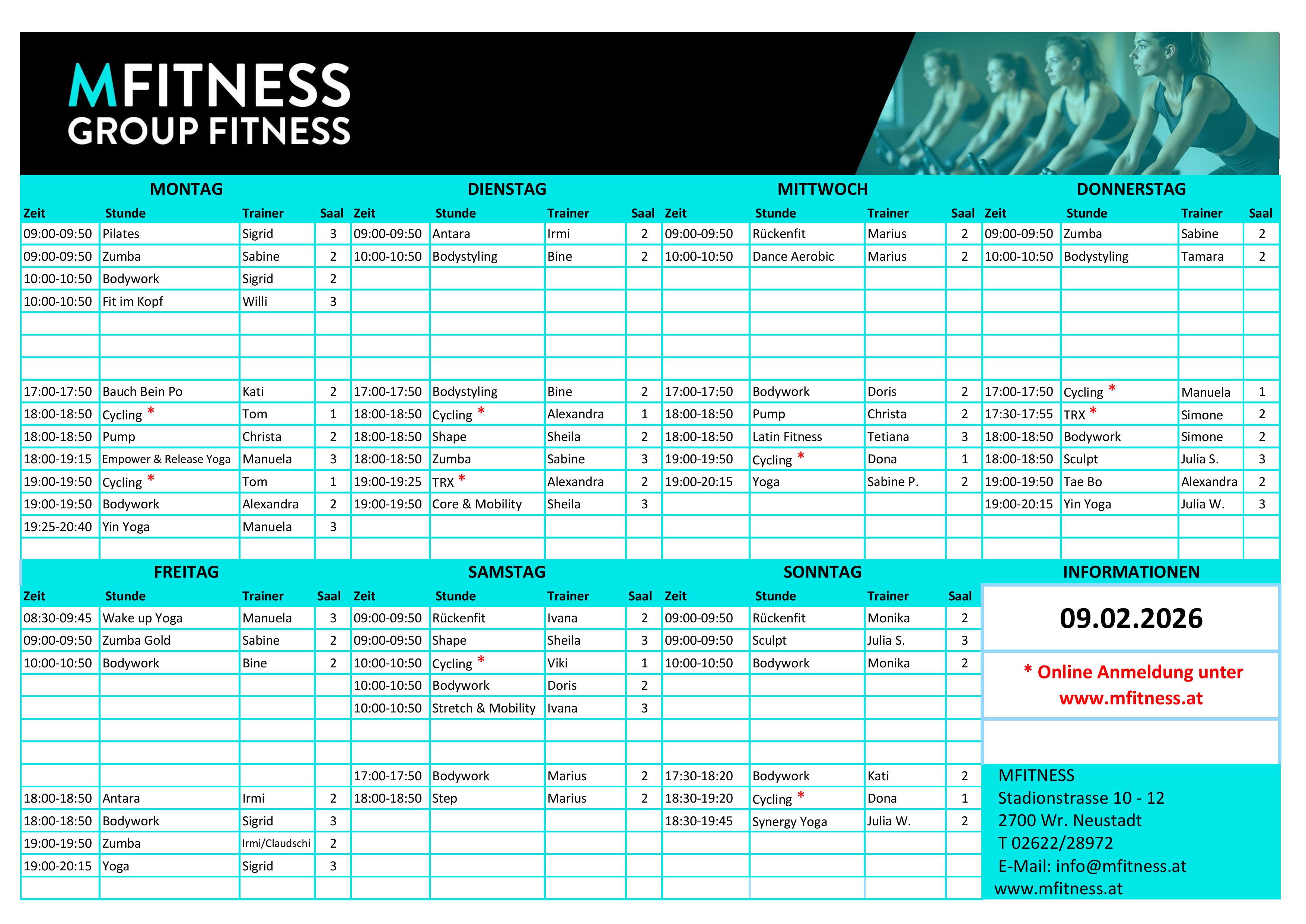 Wegen Urlaub oder Krankheit eines Trainers kann es zu kurzfristigen Änderungen kommen. An Feiertagen finden Stunden laut Info statt!